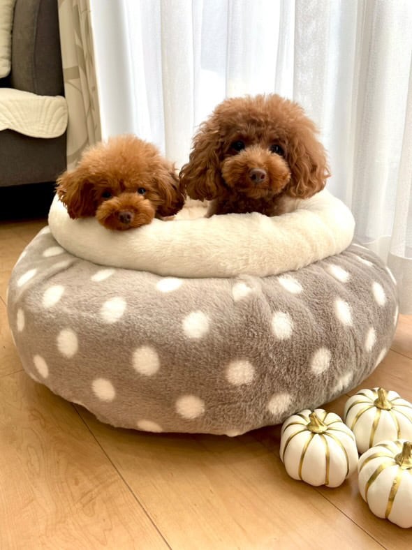 このふかふかのドット柄つぼ型ベッドで、大切なペットと心温まる時間を過ごしませんか?